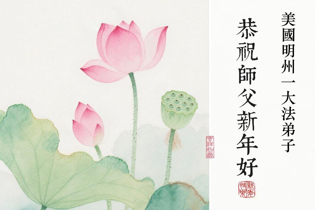 千言萬語也難表達弟子對師父的感恩,能成為您的弟子是如此的榮幸、如此的幸福!想到師父為弟子的承受就會不斷推動我勇猛精進!在此用我在2026年一月份畫的一幅畫恭祝慈悲偉大的師尊新年好!
