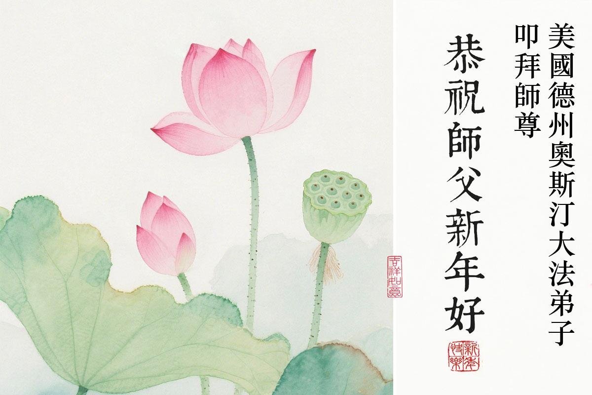 感恩師尊的慈悲救度!美國德克薩斯州首府奧斯汀市的全體大法弟子給偉大的師尊拜年!師尊辛苦了!