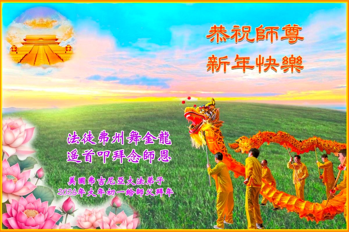 美國弗吉尼亞大法弟子給師尊拜年啦!我們要聽師尊的話,做一個合格的正法時期的大法弟子。我們時刻不忘師尊的救度之恩。希望在新的一年,我們能夠更多的實踐助師正法的誓約!