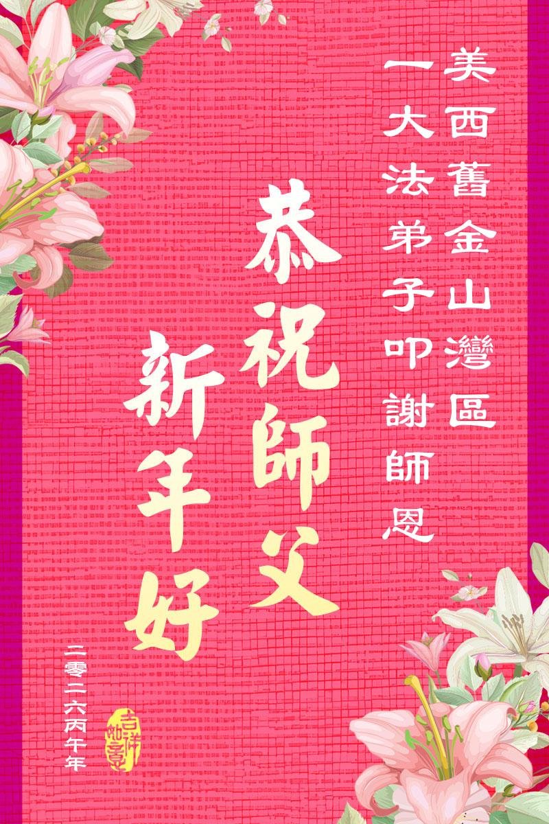 感恩師尊慈悲保護,師父您辛苦了!舊金山大紀元新唐人全體大法弟子恭祝師尊過年好!