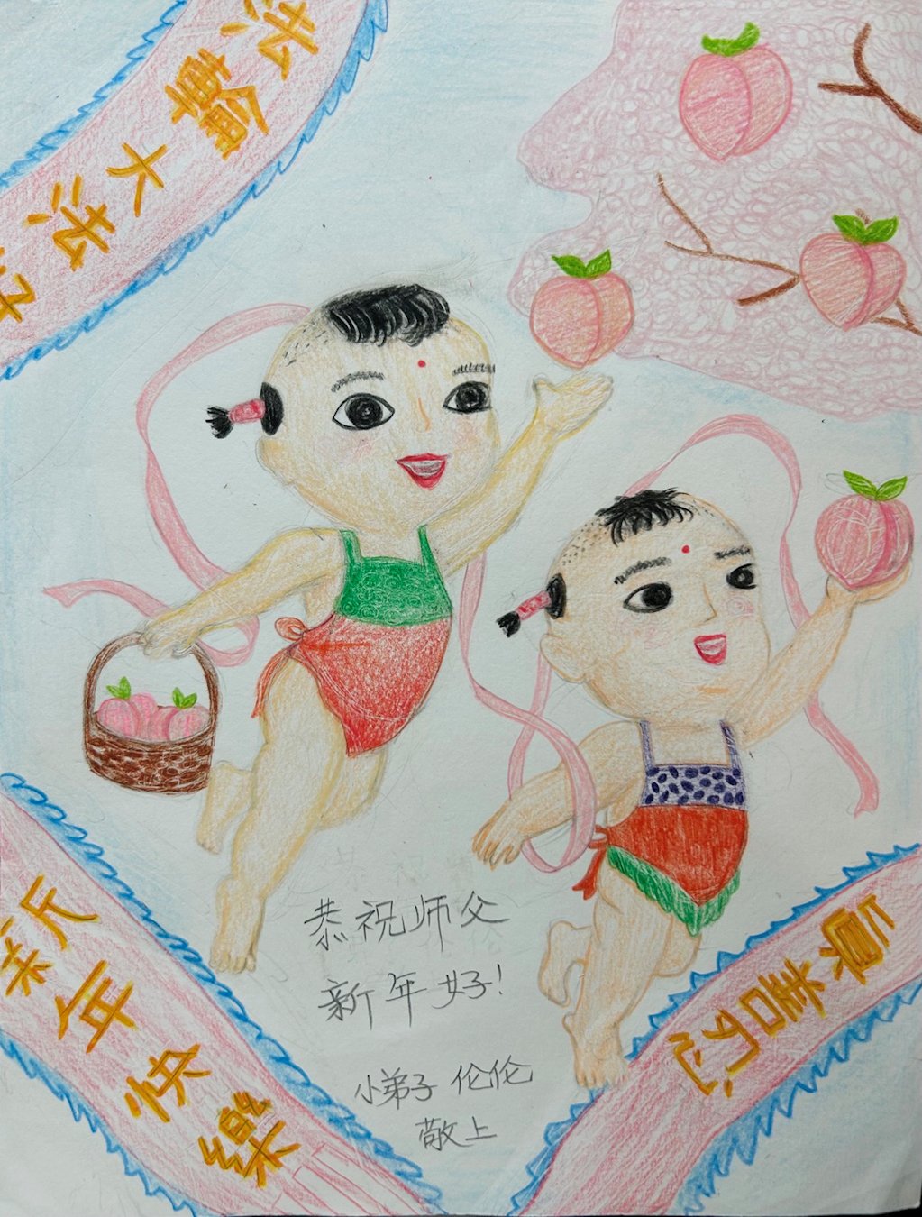 舊金山一大法小弟子倫倫(11歲)畫福娃,給師父拜年!