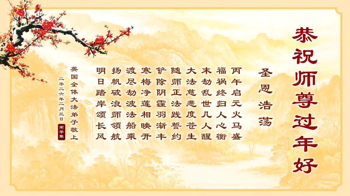 有幸能生於大法洪傳時,特別是能得法、助師正法,無盡的感恩無法用言語表述。恭祝師父新年好!感恩師尊將大法傳於我們!