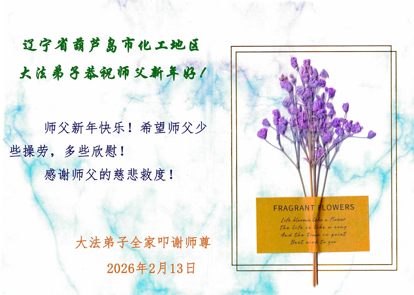 遼寧省葫蘆島新區大法弟子恭祝師尊新年快樂!