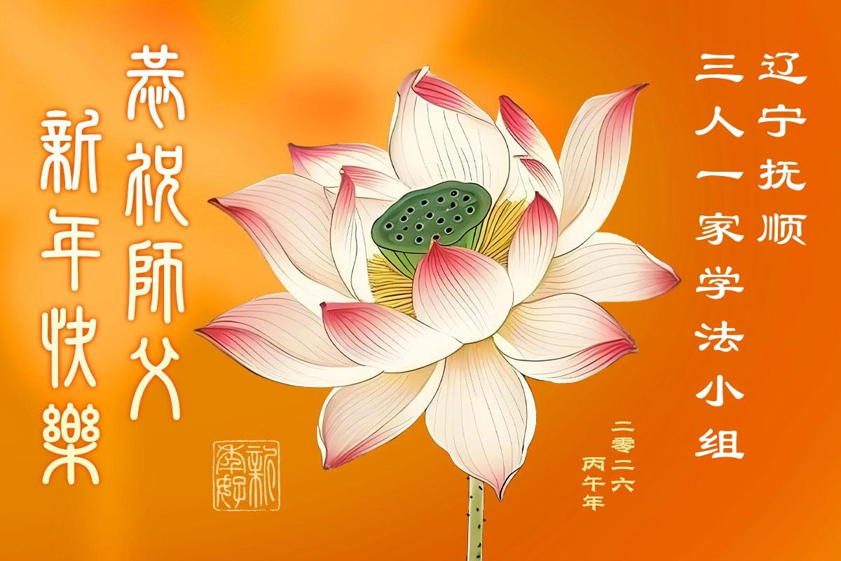 遼寧撫順三人一家學法小組大法弟子恭祝師父新年好!