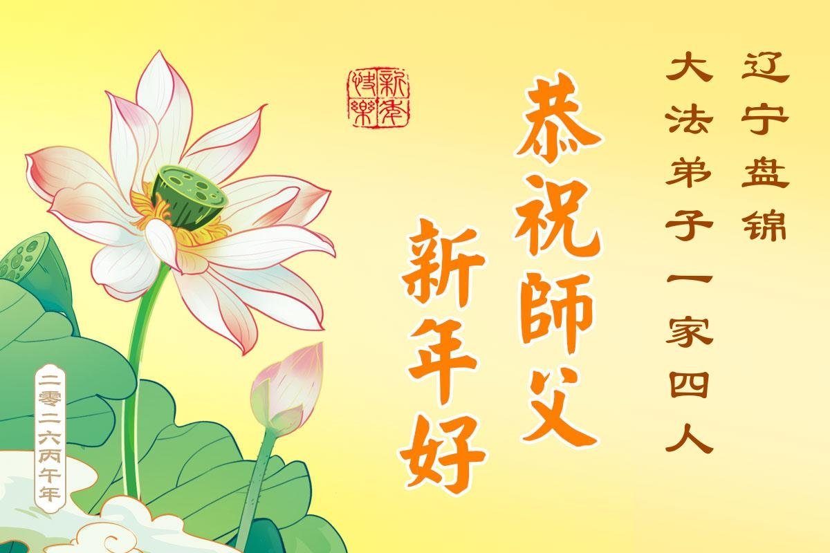 遼寧盤錦大法弟子一家四人恭祝慈悲偉大的師尊過年好!