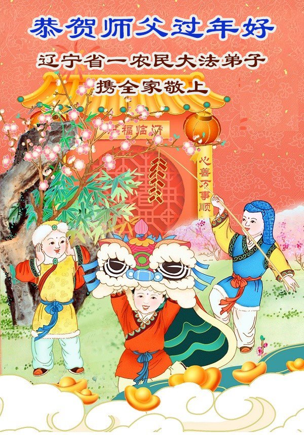 遼寧省一農民大法弟子攜全家恭祝師尊新年快樂!