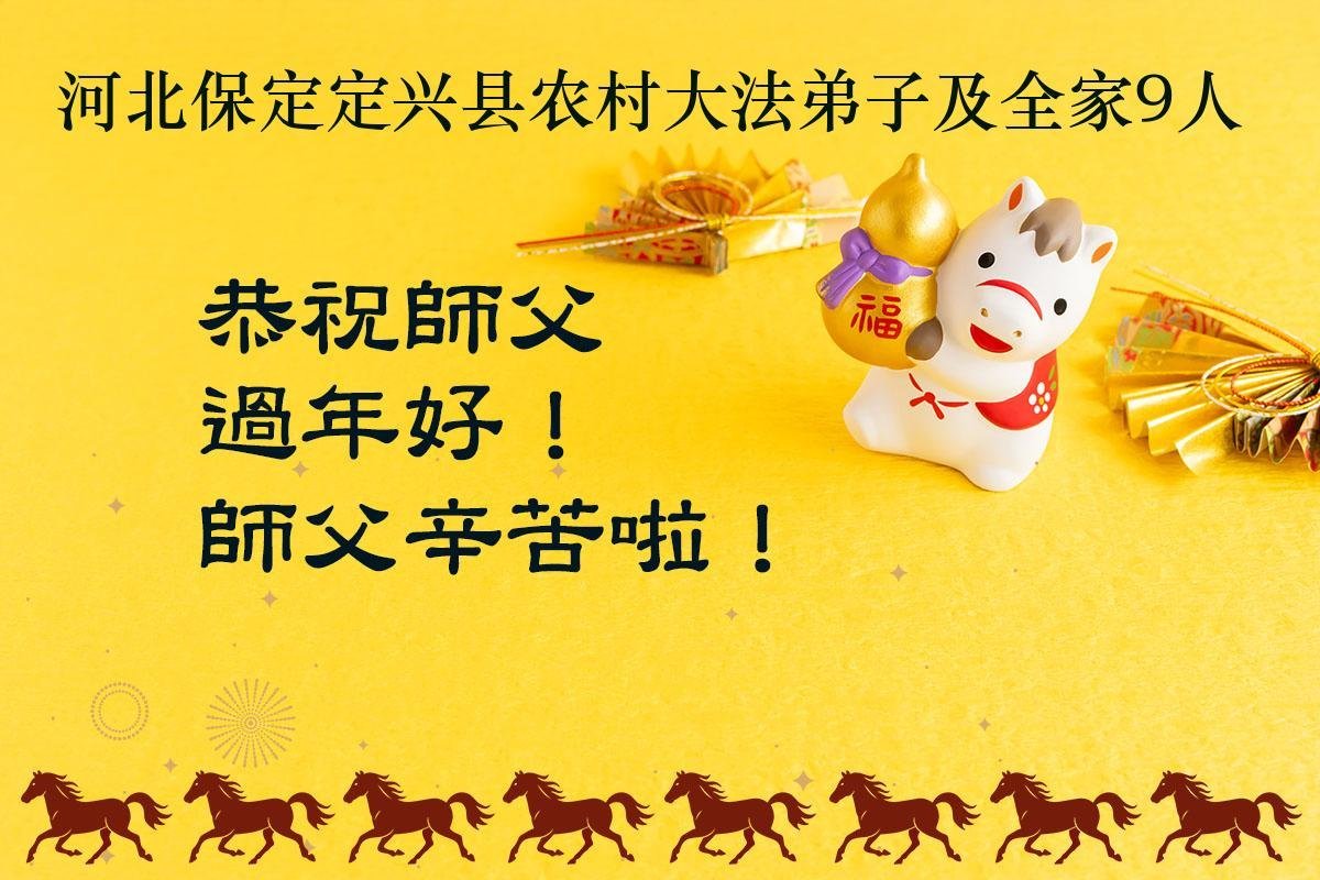 河北省石家莊趙縣一農村大法弟子攜全家恭祝師父新年快樂!