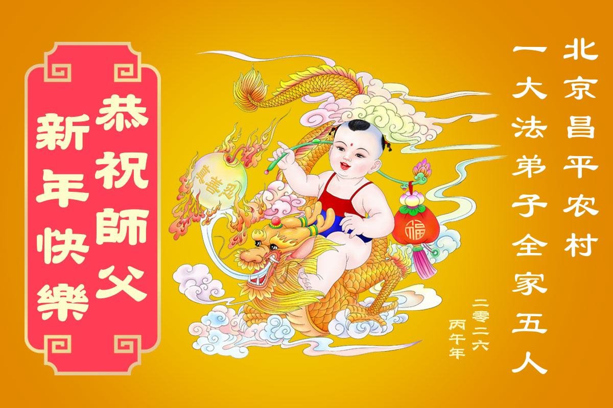 黑龍江省哈爾濱市農村大法弟子一家五口人恭祝師尊新年快樂!
