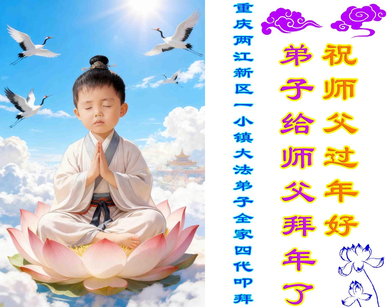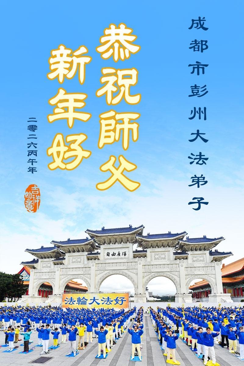 2026年新年來臨之際,四川省成都市新津區重生片區十多名大法弟子向師父拜年!恭祝師父新年好!合十!