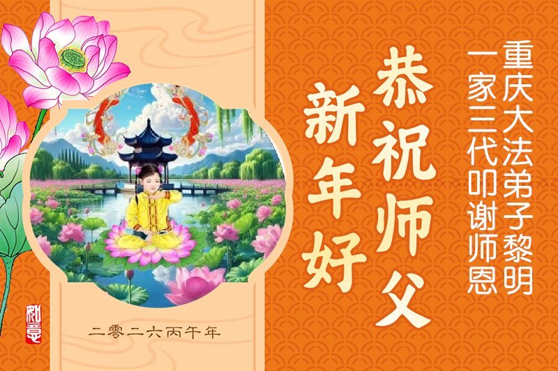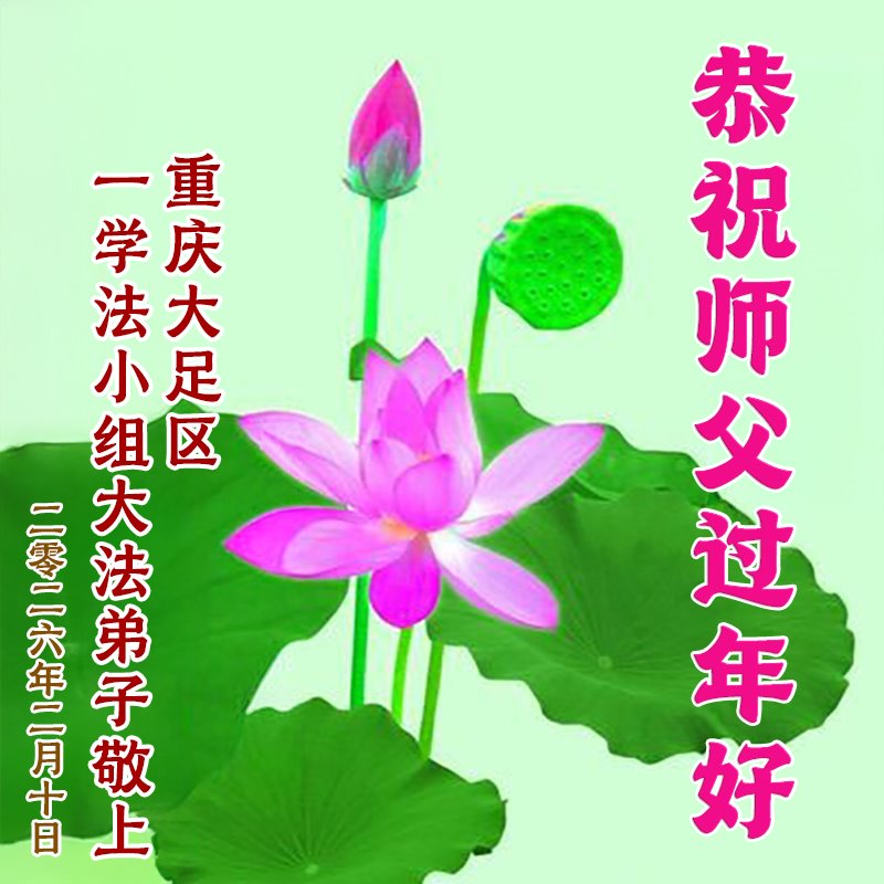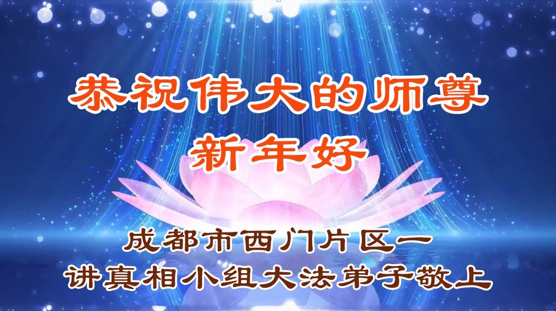 慈悲偉大的師父您好!您辛苦啦!新年到來之際,弟子們恭祝慈悲偉大的師父新年好!新年快樂!給師父拜年!感恩師父慈悲保護與苦度!我們一定會相互配合好,做好三件事講好真相多救世人,完成好大法弟子的使命,跟師父回家。
