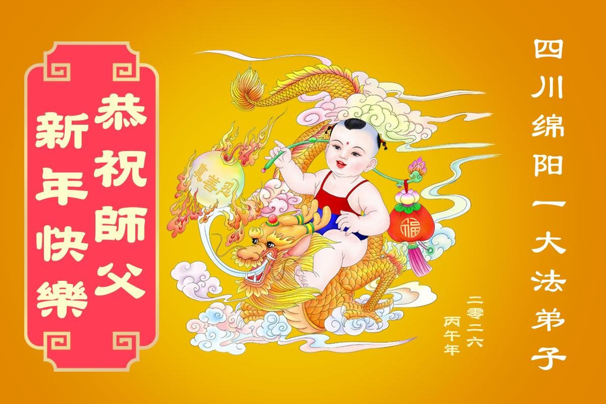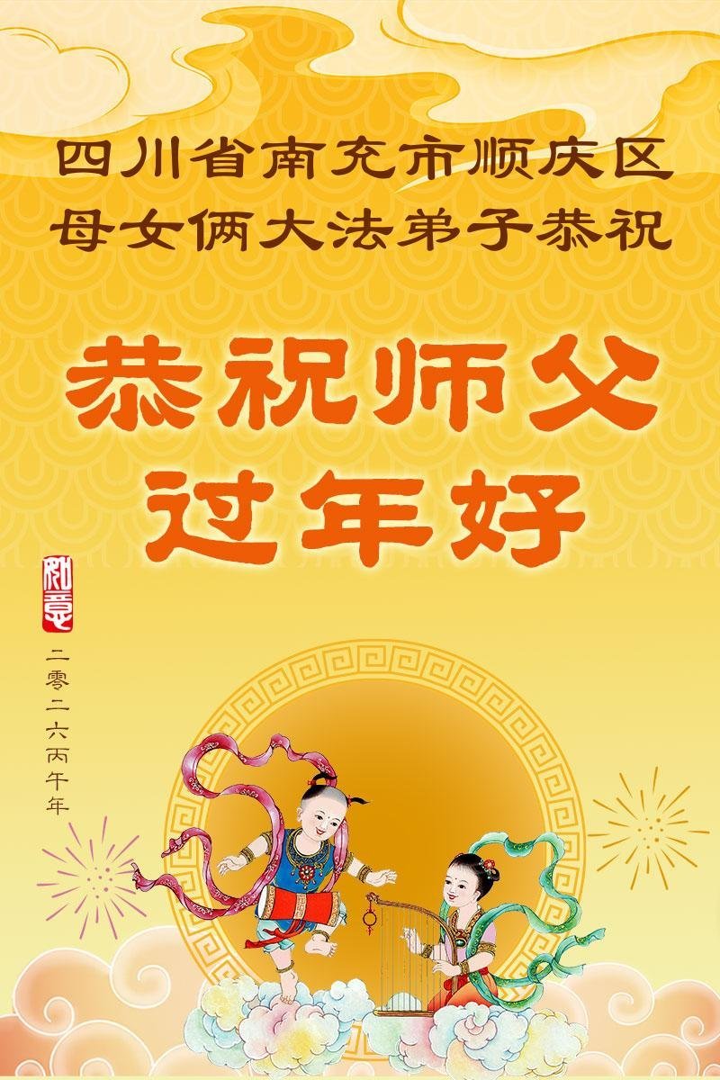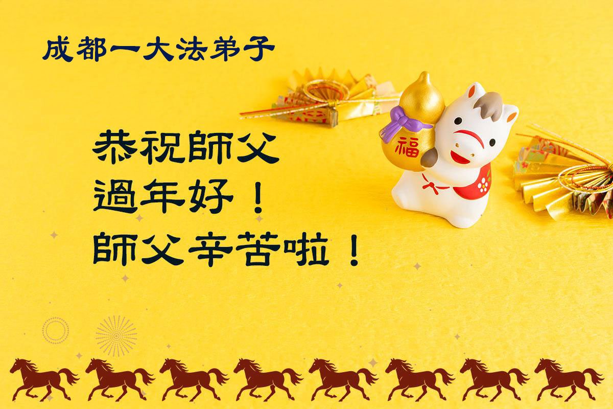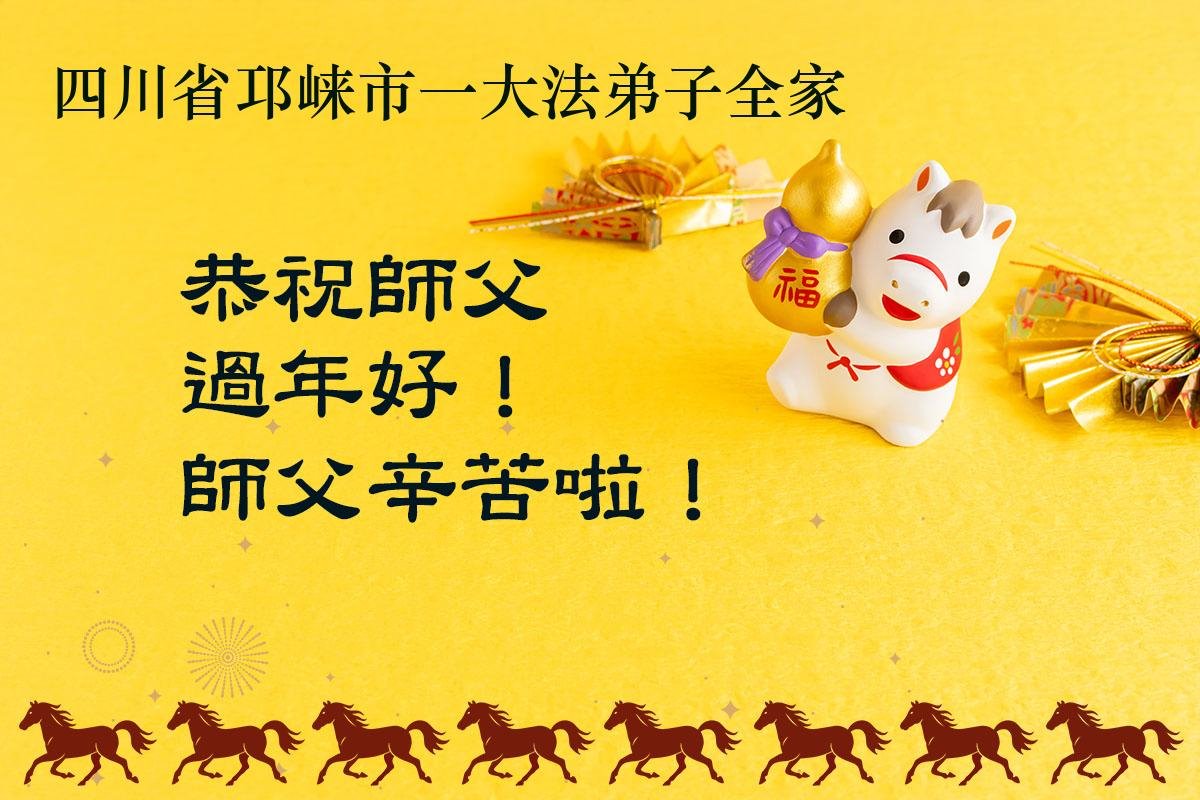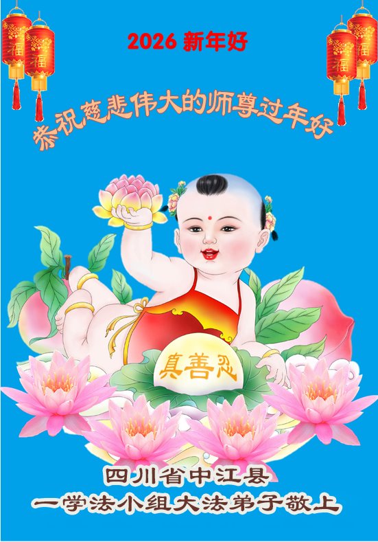 值此新年到來之際,弟子及家人向慈悲偉大的師尊問好:恭祝師尊新年快樂!感恩師尊的慈悲救度!弟子一定堅定實修,決不辜負師尊的期望。盼望與師尊團聚的那一天!