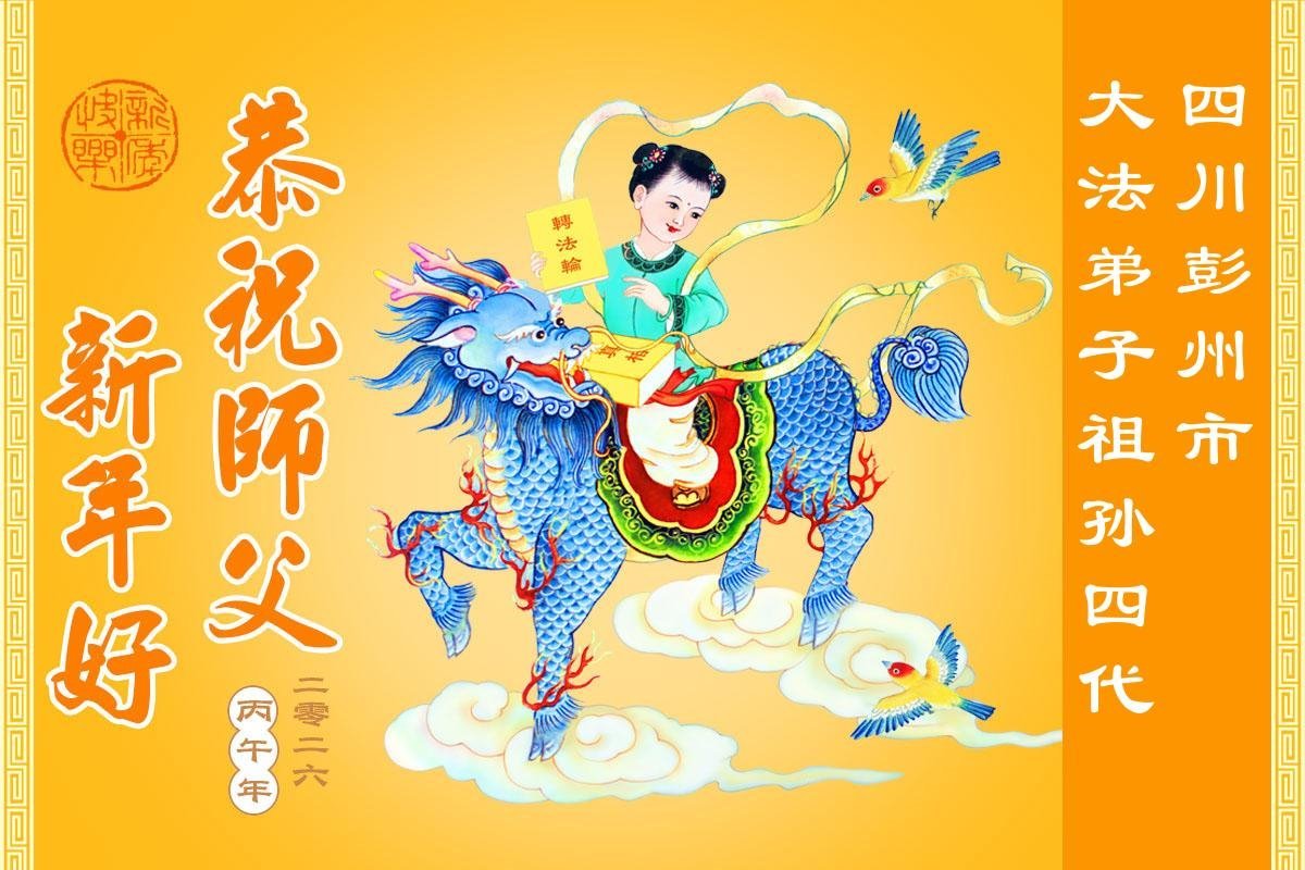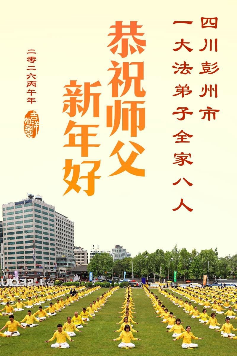 四川彭州市大法弟子攜家人敬上