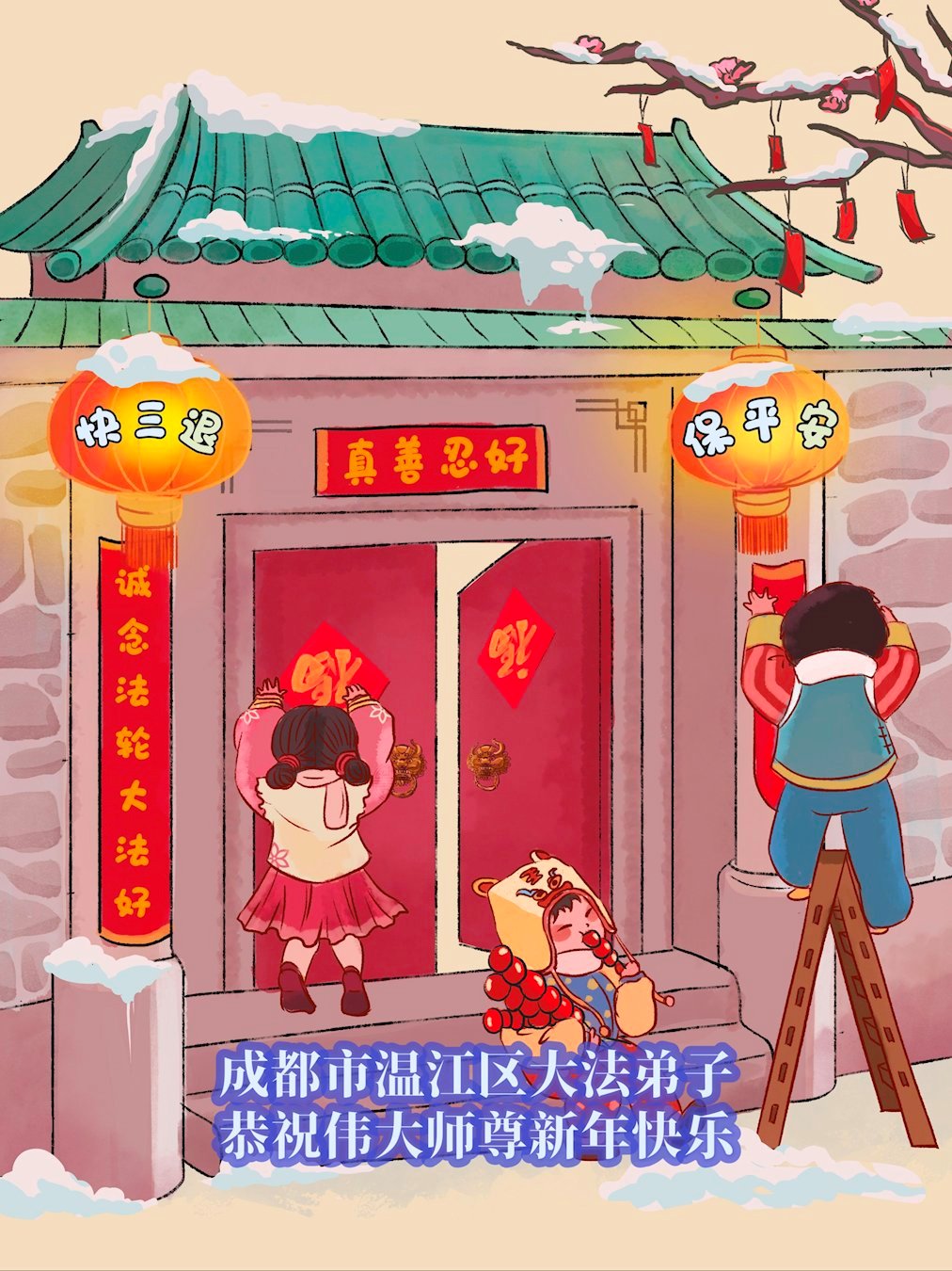 中國大年即將來臨,我們非常感激師父的慈悲救度之恩!我們一定要努力做好師父安排的三件事,多學法,學好法,講清真相,多救世人。