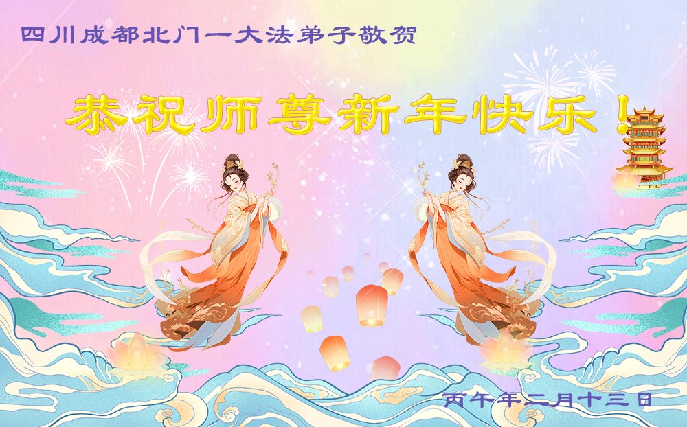 恭祝師父新年快樂!我是1999年得法的一大法弟子,謝謝師尊的慈悲救度,給了我第二次的生命,讓我明白了當人的真正意義,我一定要緊跟師尊的步伐,回歸自己真正的家。