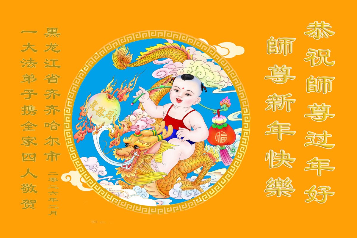 尊敬的師父好:我代表家人同修給師父拜年,師父新年好,給師父叩頭!師父辛苦了!