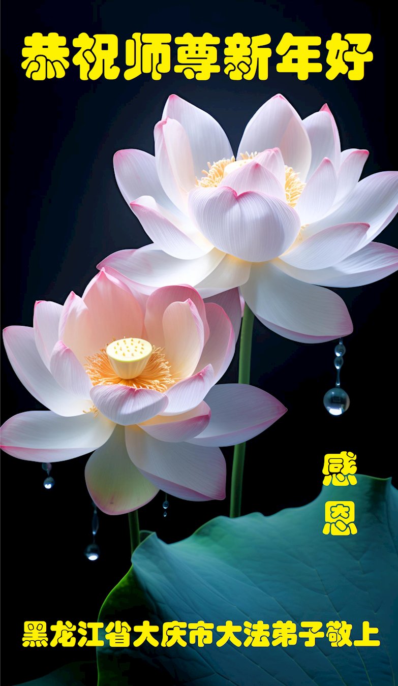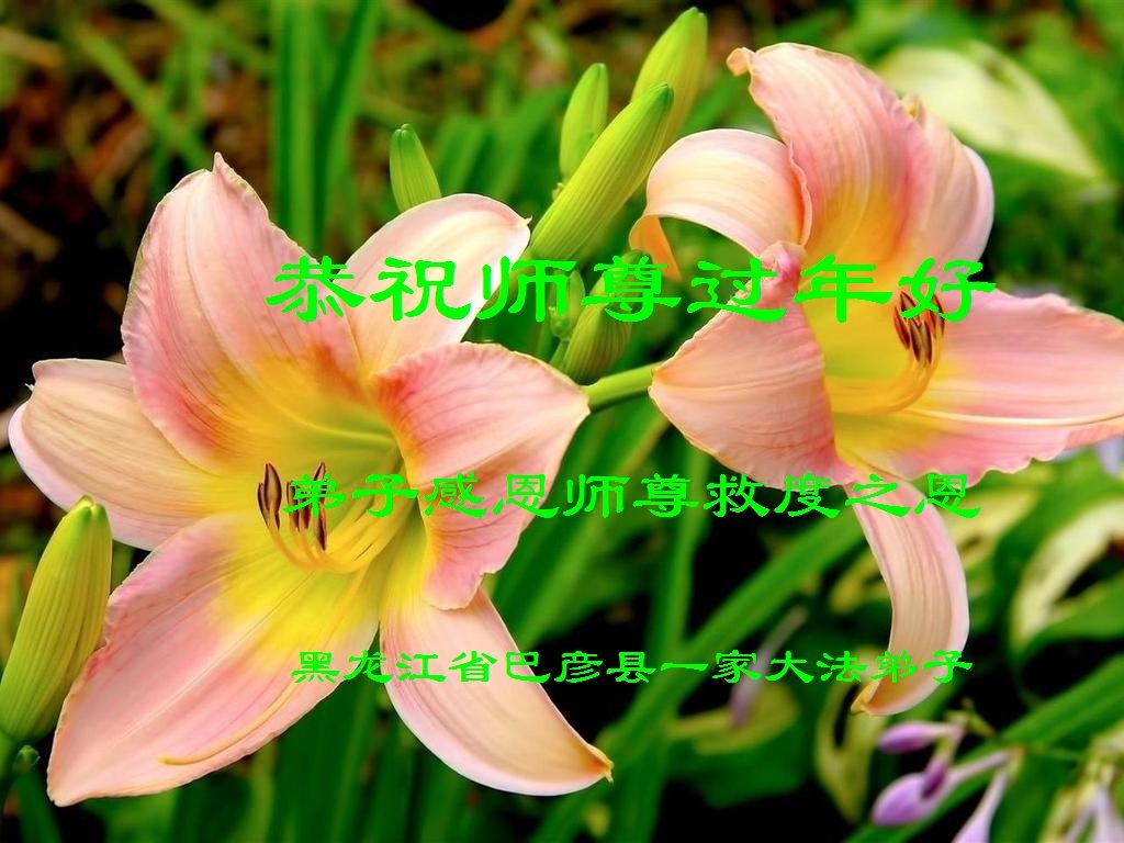 在中國傳統新年來臨之際,我給師尊拜年了!感恩師尊讓弟子得到了高德大法,走上了返本歸真的路,在今後的修煉中我要修好自己,向內找,多救人,不辜負師父的慈悲苦度。我代表全家大法弟子給慈悲偉大的恩師拜年了!師尊您辛苦了!祝師尊新年快樂!法輪大法好!真善忍好!