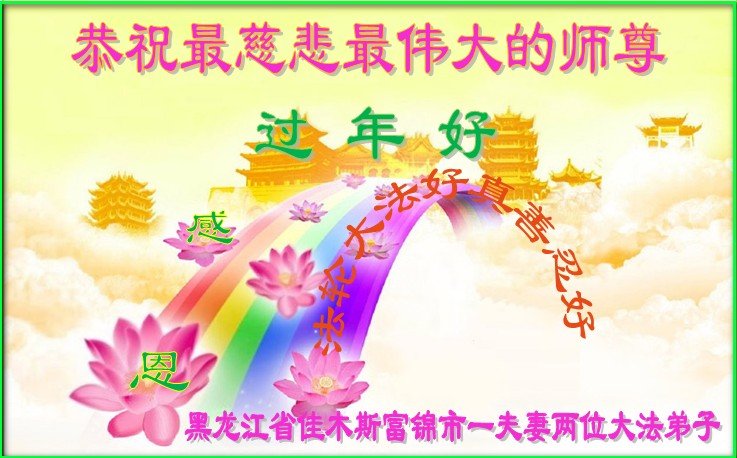 黑龍江省佳木斯富錦市一夫妻倆大法弟子恭祝最慈悲最偉大的師尊過年好!新年快樂!師尊辛苦了!