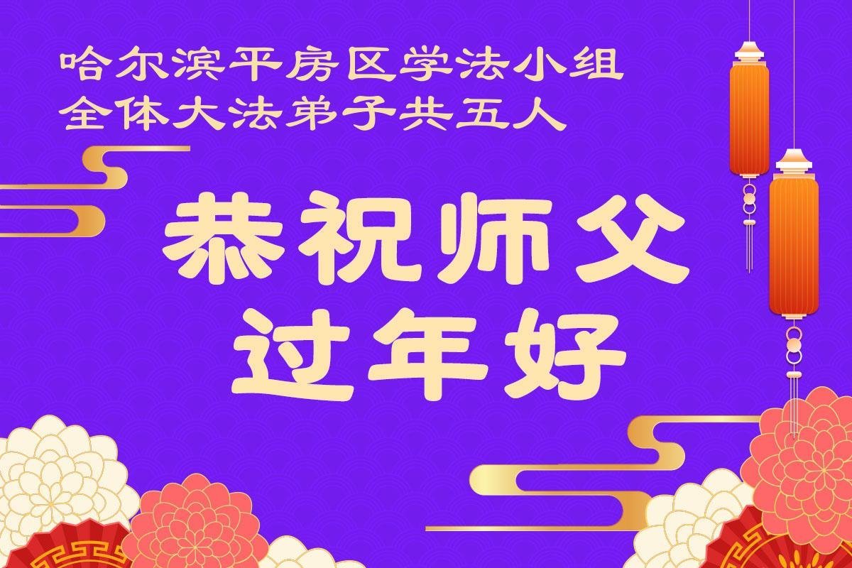 黑龍江省哈爾濱省仨人學法小組大法弟子恭祝師尊過年好!