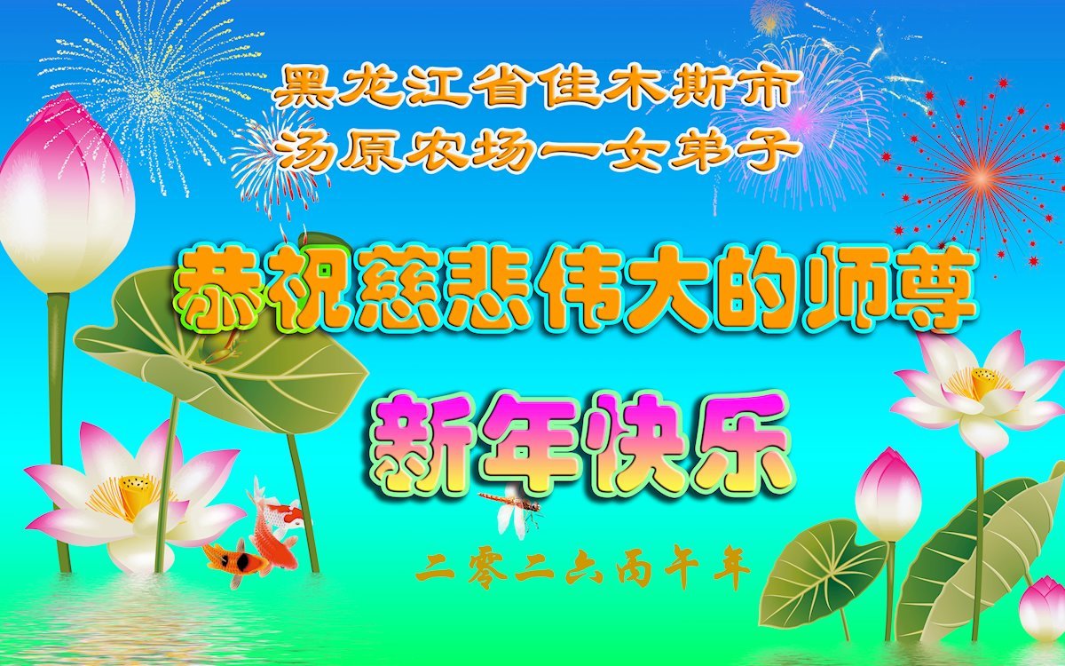 黑龍江省佳木斯市湯原農場一女大法弟子恭祝師尊新年快樂!