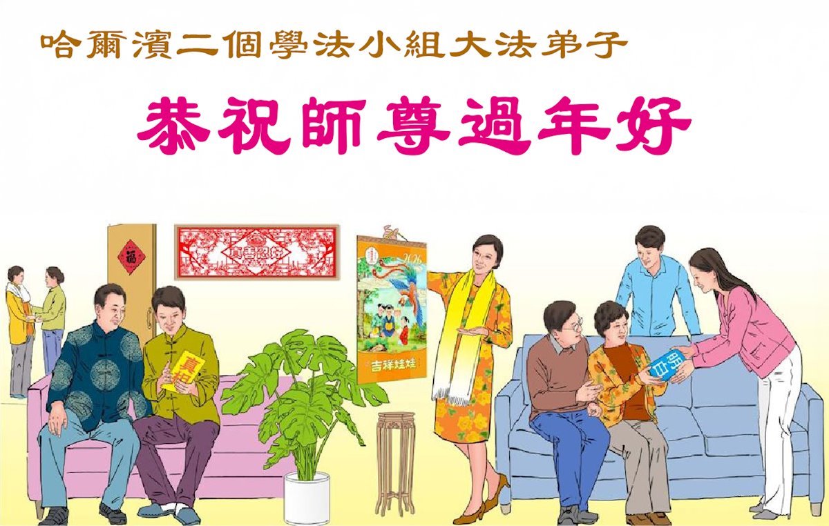 黑龍江省哈爾濱市二個學法小組大法弟子恭祝師尊過年好!