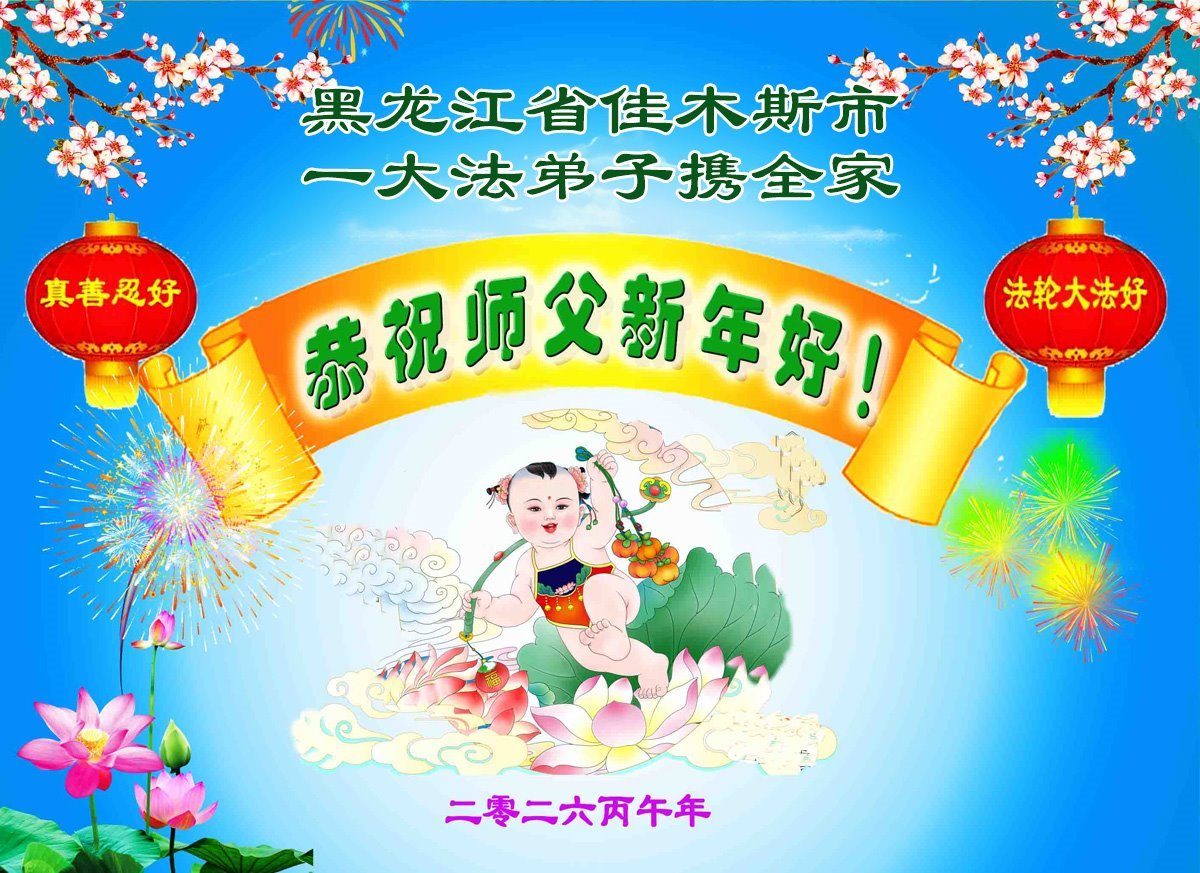 黑龍江省佳本斯市郊區一名大法弟子攜家人恭祝師尊新年快樂!