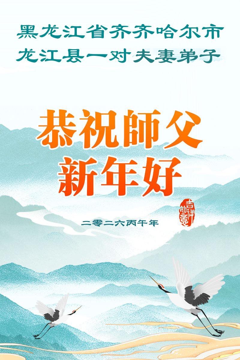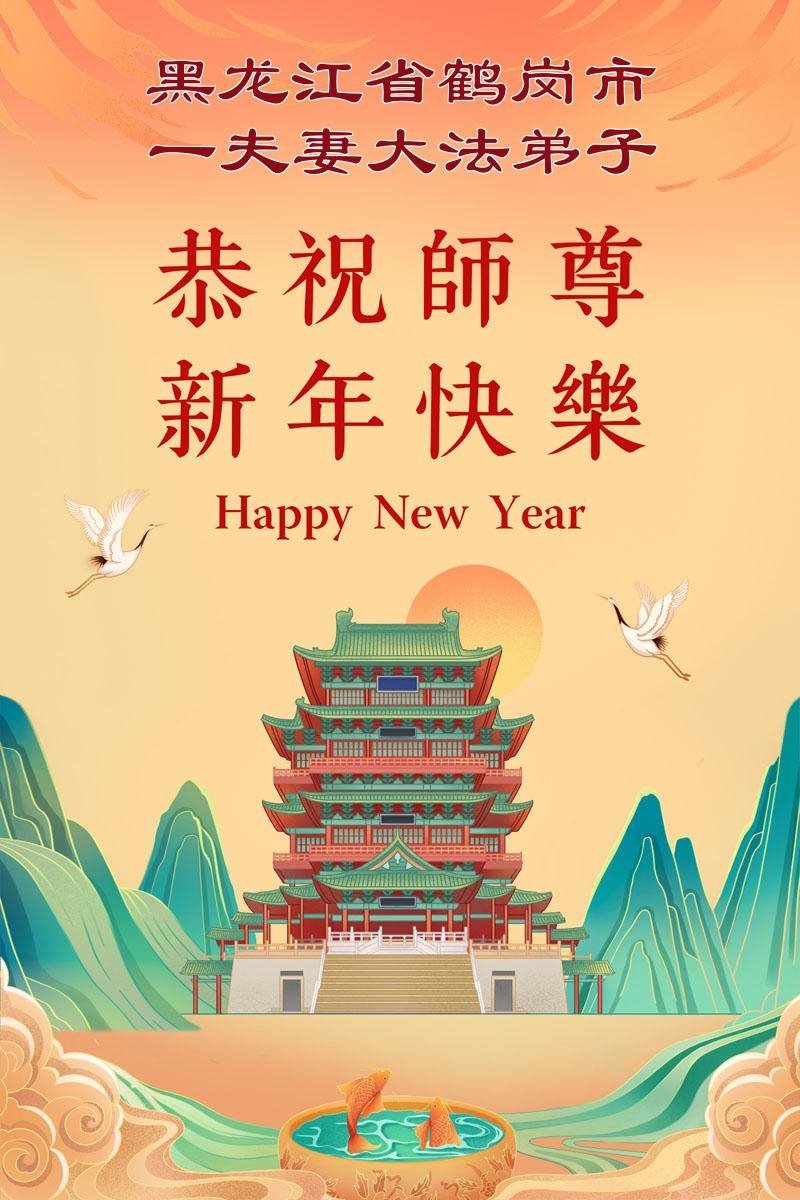 黑龍江省佳木斯市夫妻倆大法弟子恭祝慈悲偉大師尊新年快樂!