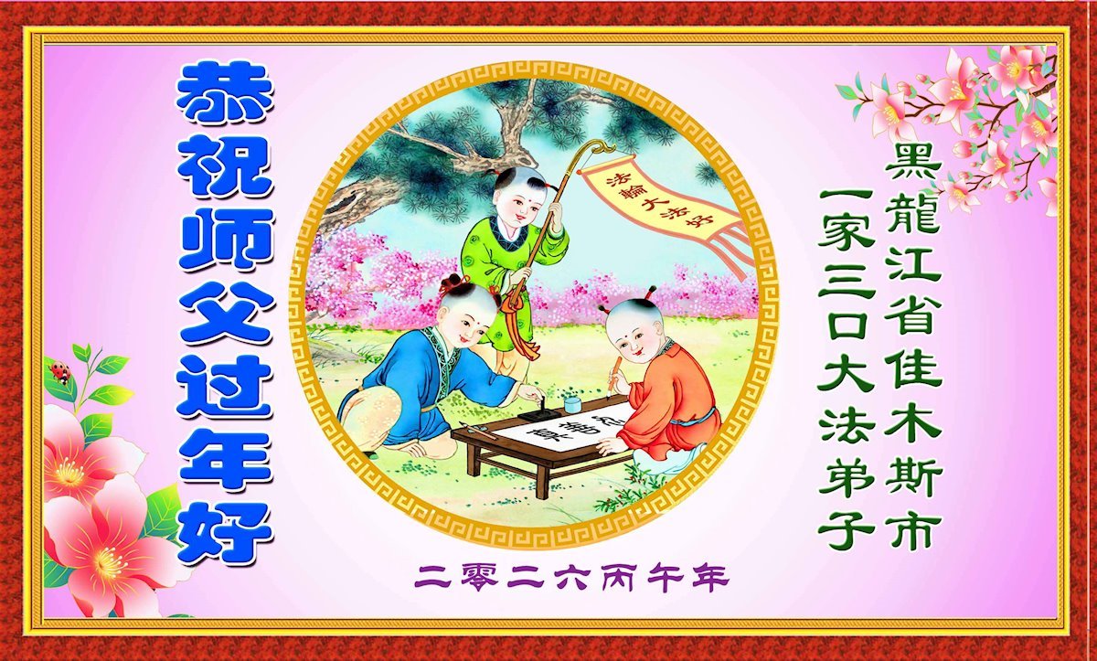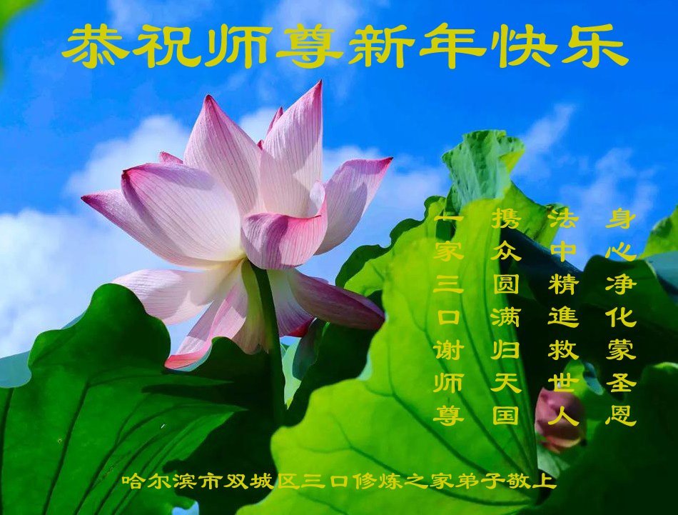 黑龍江省哈爾濱一家二位大法弟子及全家恭祝慈悲偉大的師父過年好!