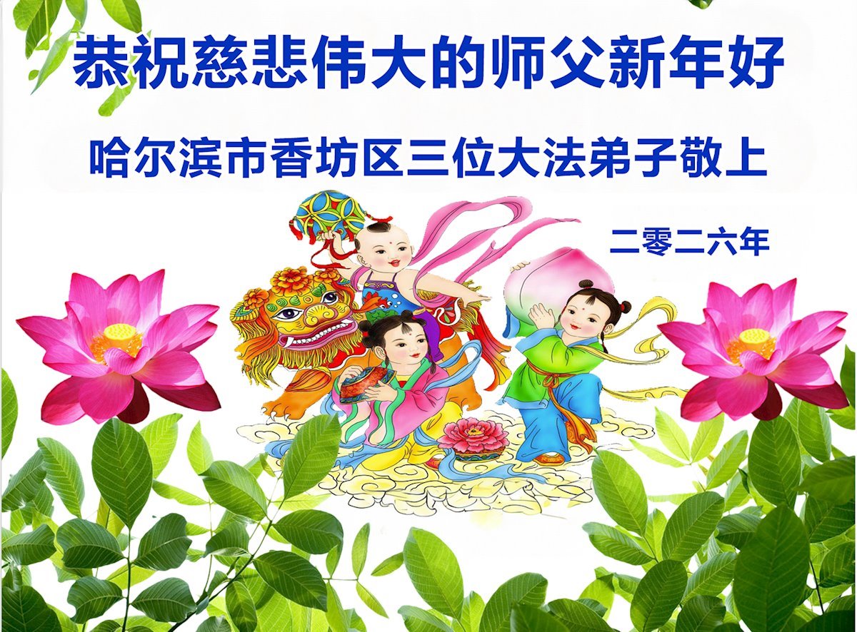 黑龍江省哈爾濱市香坊區三位大法弟子恭祝慈悲偉大的師父新年好!