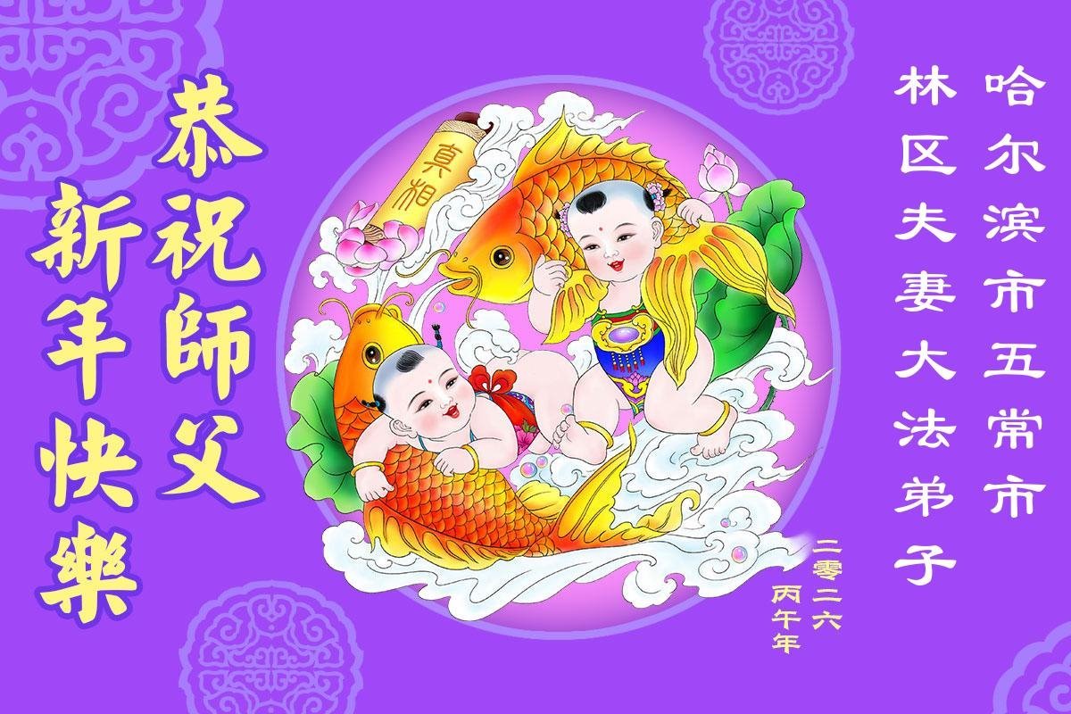 黑龍江省哈爾濱市二位大法弟子恭祝師尊過年好!