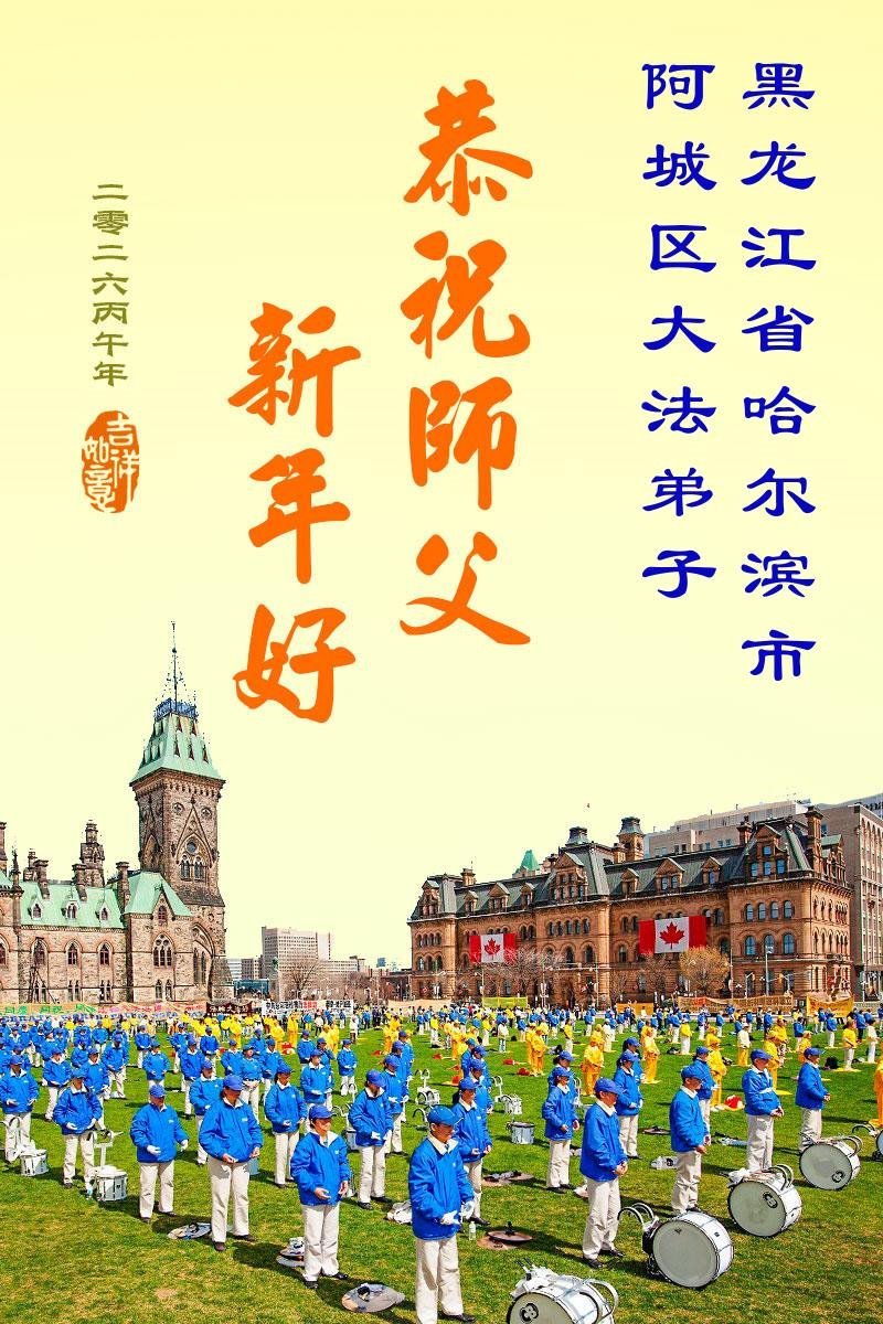 黑龍江省哈爾濱市全體大法弟子恭祝師尊過年快樂!
