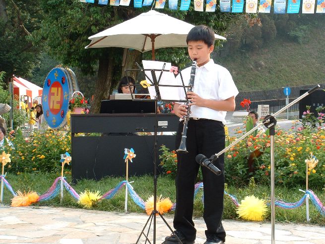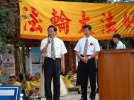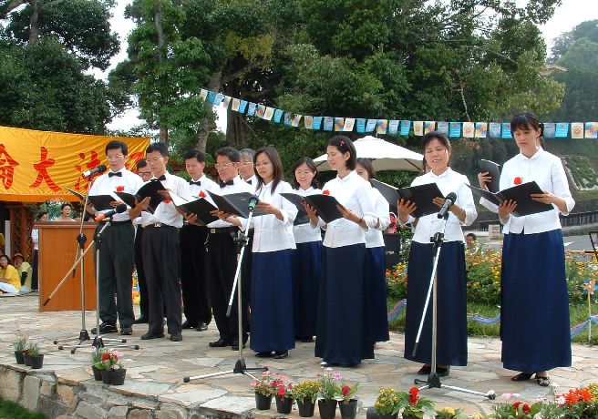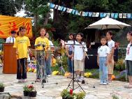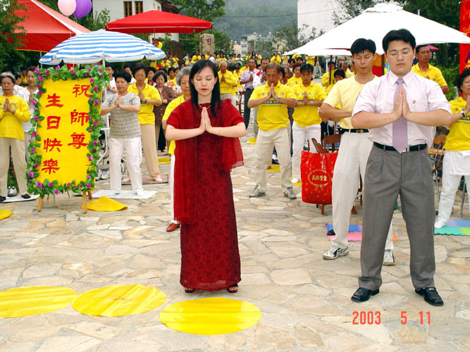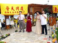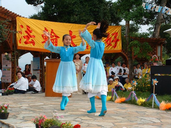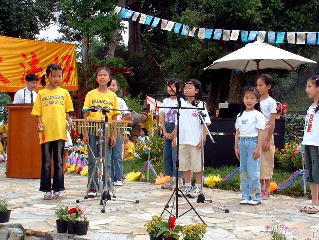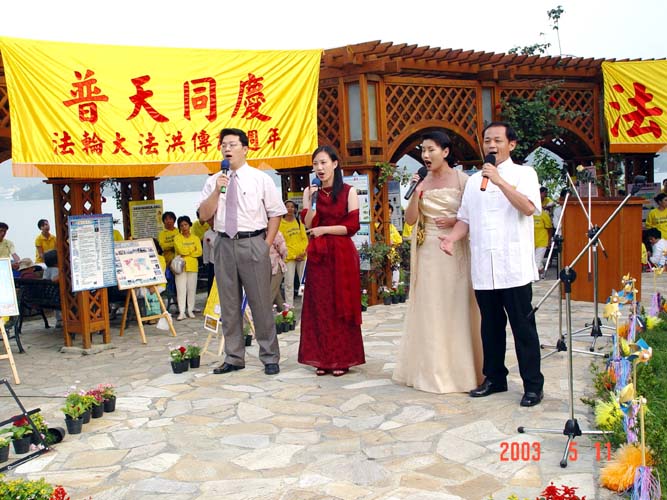 【明慧網2003年5月13日】在2003年的五月,全世界的大法弟子皆為5.13世界法輪大法日的到來感到高興與歡騰,在各地舉辦慶祝活動。5月11日,台灣中區大法弟子亦在日月潭舉辦慶祝會,上午與來自各地的大法弟子一起學法交流共同提升,下午除以真相圖片展及種善念運動啟發一起參與的民眾的善念外,並舉辦音樂會,以舞蹈、詩歌朗誦、團體合唱、音樂演奏的方式洗滌人心、講清真相,活動現場充滿祥和之氣。南投縣魚池鄉鄉長廖學輝也出席了我們的慶祝活動。