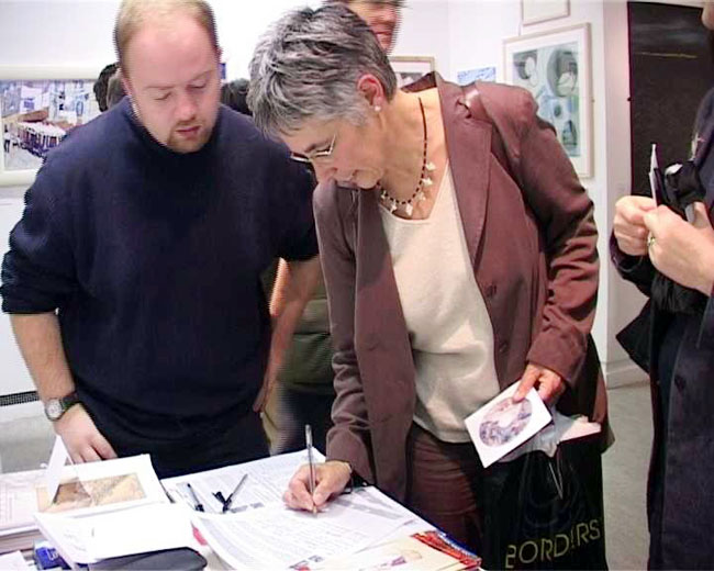| 現場繪畫表演 | 觀眾在請願書上簽名 |
