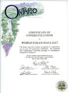 市長和市議會很高興在你們慶祝第12屆「世界法輪大法日」之際向你們表示祝賀。我們對你們所遵循的真、善、忍原則表示讚賞。