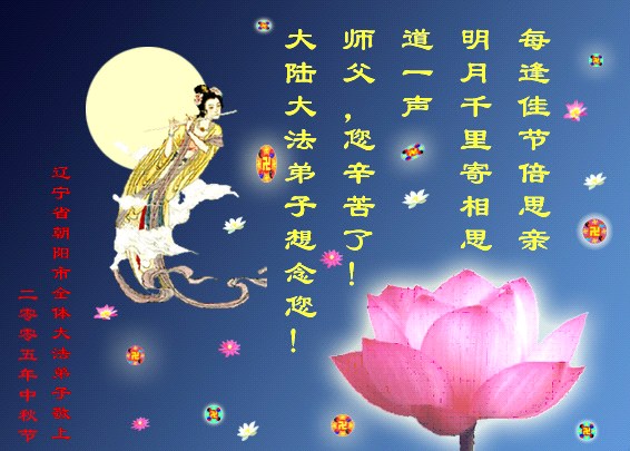 • 遼寧省朝陽市全體大法弟子在中秋節來臨之際,向偉大的師尊致以中秋問候!