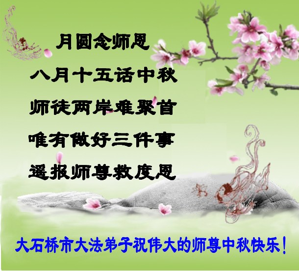• 遼寧大石橋市全體大法弟子祝偉大的師尊中秋快樂