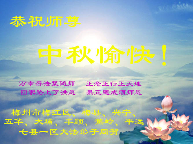 • 廣東梅州市梅江區、梅縣、興寧、五華、大埔、豐順、蕉嶺、平遠、七縣一區大法弟子恭祝師尊中秋愉快