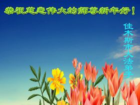 在新年來臨之際,大法弟子們給師父送去最衷心的問候,表達對師父的思念,謝謝師父的慈悲苦度!我們會做到時時溶於法中,正念正行,整體提高,救度更多的眾生,圓滿隨師還。