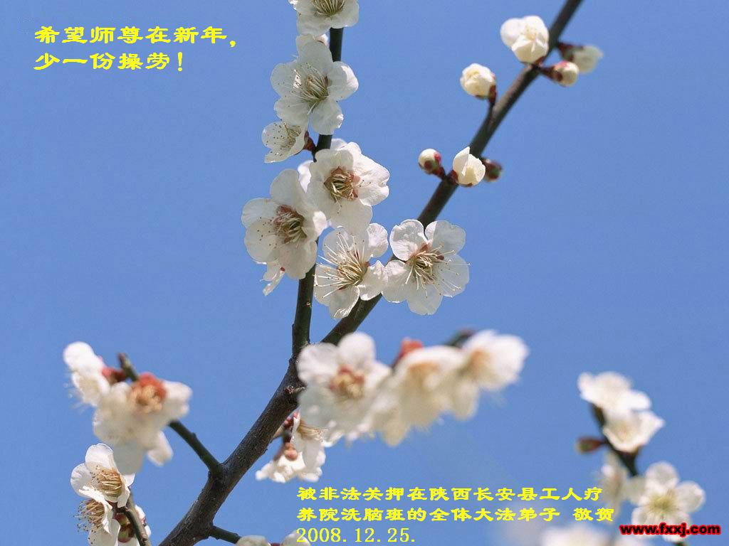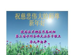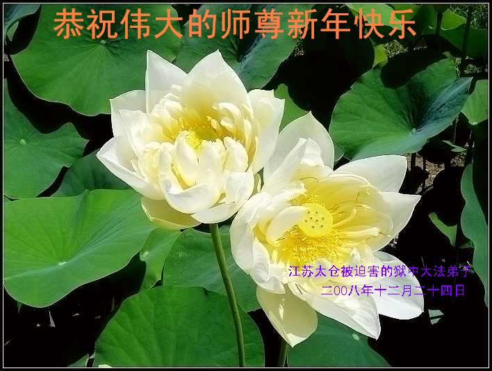 我們是被非法關押在四川德陽監獄的大法弟子。在過去的一、二年裏,我們很多的大法弟子都做得不好,對不起師父,但是除極個別的充當了猶大之外,大多數的大法弟子仍在堅持修煉,請師父放心!在2009年新年快到之際,我們全體在四川德陽被非法關押的大法弟子向師父問好!祝師父過年快樂!