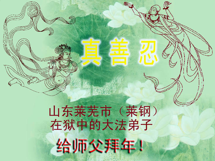 山東萊蕪市被非法關在獄中大法弟子給師尊拜年!