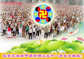 北京大法弟子恭祝慈悲偉大的師尊生日快樂!