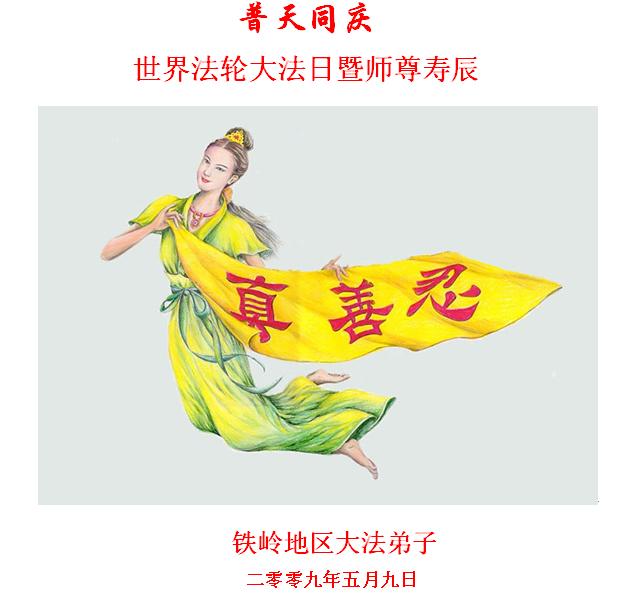 鐵嶺地區大法弟子恭祝師尊生日快樂!普天同慶法輪大法洪傳十七週年!