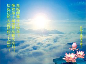 普天同慶法輪大法洪傳世界十七週年和世界法輪大法日!我們決不辜負師尊的慈悲苦度,努力做好三件事,完成正法時期大法弟子證實法和救度眾生的歷史使命。