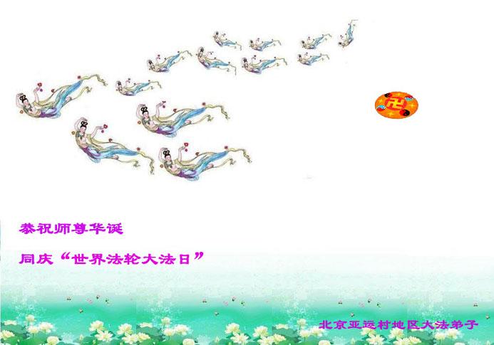 在這天上人間普天同慶的日子裏,請師父放心,在這最後的救度世人的日子裏,我們一定做好師父要求的三件事,緊跟正法進程,完成正法時期大法弟子的神聖使命。