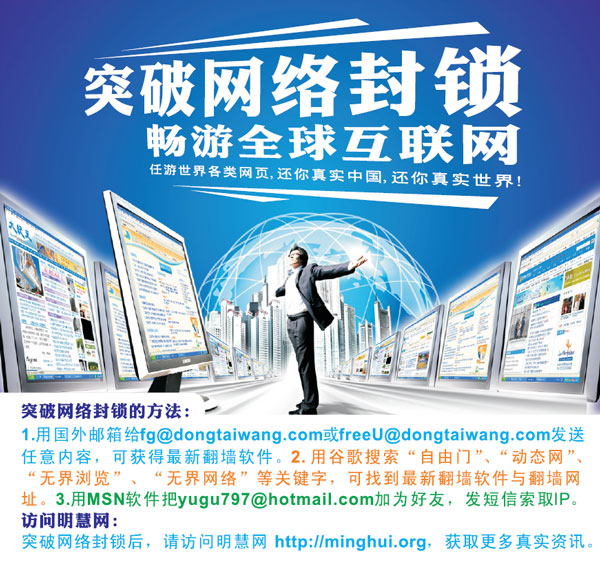 (製作說明:印好後,需事先沿底部文字間的虛線剪開,形成可容易撕下的小字條,再張貼到公共場所,人們可撕下小字條後拿回去看,按方法上網。)