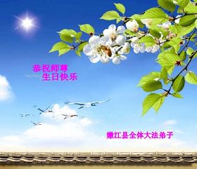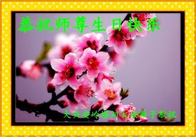 師父,我們跟隨您已走過了十八年了。在這十八年裏,從開始的混混沌沌、朦朦朧朧,到比較清醒的主宰自己、做著自己該做的事,不知讓師父操了多少心、費了多大的力。是您把我們從地獄中撈起洗淨,又往上送了一程又一程。您一次次給我們機會,又一次次幫我們爬起扶正,這樣才使我們從腥風血雨中走過來,從殘酷的滅頂之災的迫害中跌跌撞撞而又堂堂正正的走到今天。每到想起這些,我們每個大法弟子都泣不成聲。我們的每一步都離不開師父的佛恩浩蕩,每一次昇華都離不開大法的神奇超常。我們從滿身業力的常人到遵循「真善忍」做好人的修煉者,再到「正法時期的大法弟子」,我們一步步走向成熟。特別是師父把「向內找」這一法寶捧給我們,我們更是如魚得水、如虎添翼,他是我們力挫一切邪惡的有力法器,他是我們盪滌一切污泥濁水的法寶,誰相信他,誰就能懂得修煉的真正含義,誰實施他,誰才是真正的修煉者,誰就能走向圓滿。我們榮耀啊、我們感恩,我們用所有的一切乃至生命也無法回報師父的洪恩浩蕩。只有在最後的日子裏,我們用心救人,做好三件事,就是對師父的最好報答。師父,在您傳法的日日夜夜裏,您不但把我們從平庸中煉就成無私無畏的大法粒子,而在此時,天、地、人同時沐浴佛光,用「真善忍」的甘露灌溉著乾枯的生靈。多少迷中的世人啊,明白了真相,得到了福報。「法輪大法好!真善忍好!」的這句真言使無數眾生消去了病魔、災難,也使無數眾生明白了大法真相,看清了共產邪靈殘暴本質,從而擁有了美好的未來。那些被惡黨毒害參與迫害的眾生,在大法弟子的不斷講真相中感受到了大法的美好,從而喚醒了善良的本性、棄惡從善,暗中幫助大法弟子,為自己和家人選擇了美好的未來。我們難以用語言表達對師父的感恩,我們千言萬語彙聚一句話;祝師尊生日快樂!願師父早回中原大地,眾弟子盼望您!最後以師父的詩表達我們此時的心願。