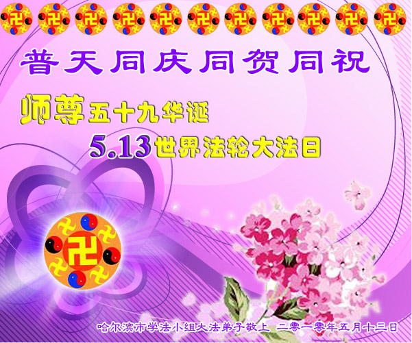 阿城全體大法弟子在二零一零年偉大師尊五十九華誕暨世界法輪大法日來臨之際,首先恭祝我們偉大的師尊生日快樂!道一聲:師父您辛苦了!