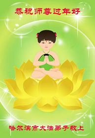 師父好我鄉鎮所有大法弟子及我的家人向慈悲偉大的師父磕首問好,祝師尊過年快樂!