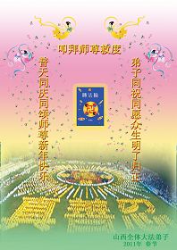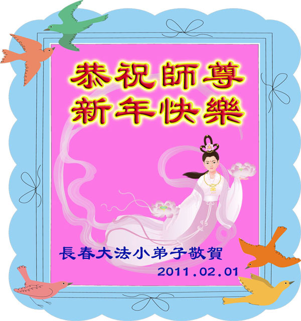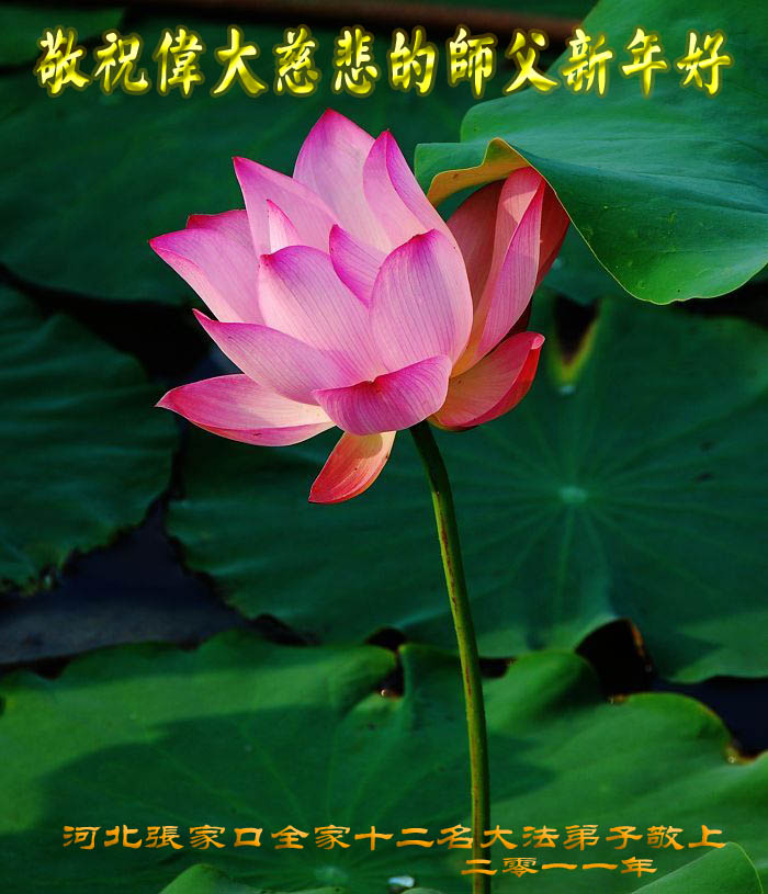2011年來臨了,我代表全家人向您問好!祝您萬事如意!幸福、安康!我們一家人幾乎都是修大法的,師父為我們操盡了心,無數次救我們的命,拯救我們出苦海,無以回報,只有多精進,多救度眾生來報答師恩!