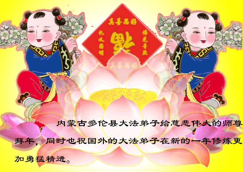 萊州市大法弟子跪拜師尊,恭祝慈悲偉大的恩師過年好!過去的歲月裏,無法用語言表達我們對師尊佛恩浩蕩的感激之情。請師父放心,我們會謹遵您的教誨,在助師正法的這條路上,我們會義無反顧的堅定的走到底!期待著和師父團聚的那一天!