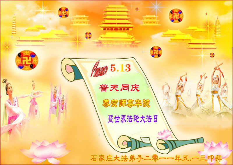 石家莊市西南高教區、郊區大法弟子恭賀偉大師尊六十華誕!慶祝第十二屆世界法輪大法日!